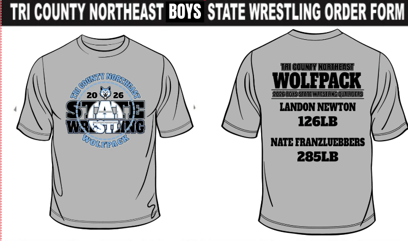 2026 Boys State Wrestling shirts are available to due. Orders are due by NOON TODAY! Click here for a printable form.