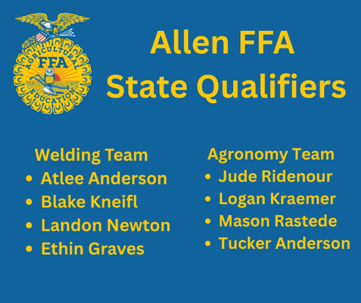 Congratulations to the Allen FFA Agronomy team who placed 5th in the district! Including Jude Ridenour (1st place), Logan Kraemer (20th place), Mason Rastede (41st place), and Tucker Anderson (45th place). They will represent us at State as well!